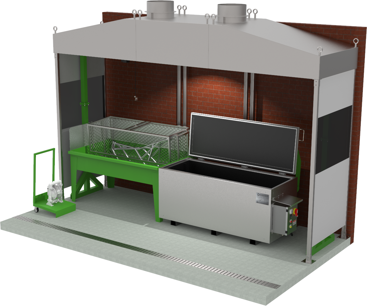 The illustration shows a recent project of a 2,600-gallon heated & agitated strip tank.
